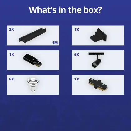 | Fabrikantnaam | Complete Straight 2-meter 1-Phase Track Set Black incl. 6x Spot fixture + GU10 2700K 3W Dim – 2x 1 M | |