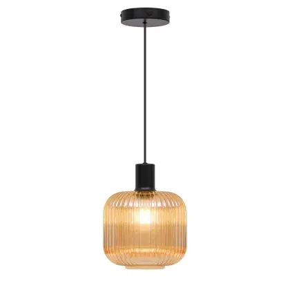 Beschrijving D'Lite Pendelarmatuur Leffinge Amber Glas | Geschikt Voor 1x E27