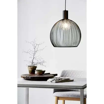 Deze bolvormige Aver hanglamp heeft een diameter van 40 centimeter en is voorzien van een E27 schroeffitting (max. 60W). De vorm maakt het armatuur geschikt voor een globe E27, maar kijk vooral wat je voorkeur heeft. Kies je voor een dimbare lamp, dan is het armatuur dimbaar.