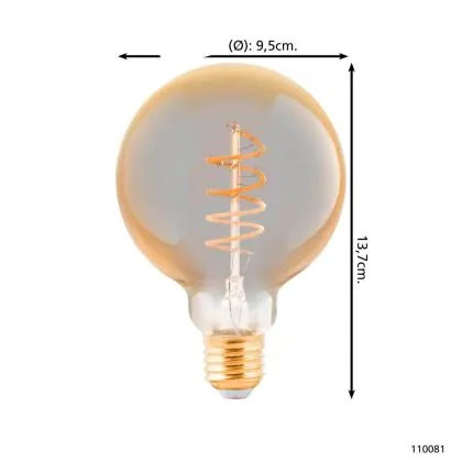Beschrijving Eglo LED Globe E27 Filament Amber 4W 245lm - 820 Zeer Warm Wit | Dimbaar - Vervangt 25W