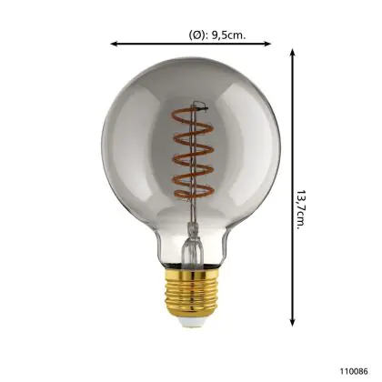 Beschrijving Eglo LED Globe E27 Filament Smokey 4W 100lm - 820 Zeer Warm Wit | Dimbaar - Vervangt 15W