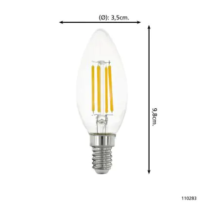 Beschrijving Eglo LED Kaars E14 Filament Helder 2.2W 470lm - 830 Warm Wit | Vervangt 40W