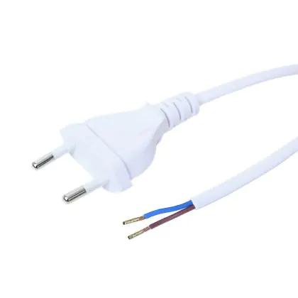 Euro voedingskabel met C7 Europlug en open uiteinden, ideaal voor het veilig aansluiten van elektrische apparaten. Deze witte 2 meter kabel (2-polig, 0,75mm²) combineert betrouwbaarheid met gebruiksgemak.