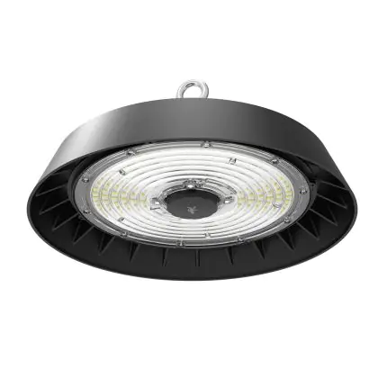 Beschrijving LED Highbay ALBIOR Staal Zwart 150W 25500lm 90D - 757 Koel Wit | IP65 - Met Bewegings- en lichtsensor