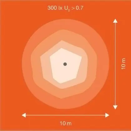 Deze LED breedstraler wordt gebruikt om (grote) oppervlaktes effectief te verlichten. Een hoge lichtopbrengst is hierbij van groot belang; hoe hoger de licht output, hoe groter de verlichte oppervlakte. Hierbij kun je denken aan het verlichten van erven, gevels, bouwplaatsen, sportcomplexen etc. De lichtopbrengst van deze LED floodlight is 121000 Lumen, met een Lumen Watt efficiëntie van lm/W. Dit houdt in dat het armatuur weinig energie verbruikt voor het licht dat deze genereert.