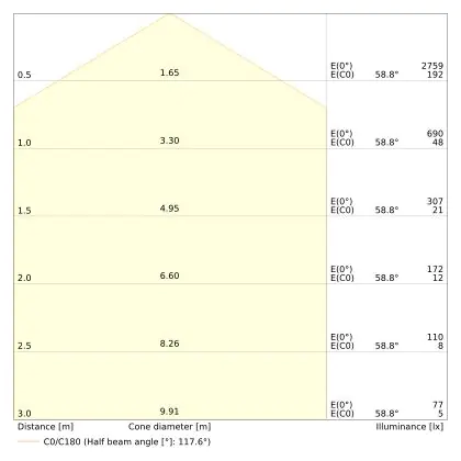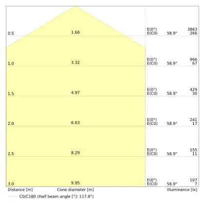 Een belangrijk element van LED plafondlampen is de IP waarde. Dit getal geeft de mate van bescherming aan tegen binnendringen van stof en vocht/water. Vanaf IP65 is het stof- en waterdicht. De IP waarde van deze LED plafondlamp is: IP44 - Stof- en Spatwaterdicht. Ben je op zoek naar een LED plafondlamp voor buitengebruik? Dan voldoet een product met een IP44 waarde (spatwaterdicht) al. Meer baat bij een product met een ander IP waarde? Klik dan hier voor ons complete assortiment aan LED plafondlampen en gebruik het zoekfilter 'IP waarde' aan de linkerkant van de pagina. Let bij het plaatsen van een LED plafondlamp in de buitenlucht ook op de IK waarde (slagvastheid). De IK waarde van deze LED lamp is: IK03 - 0.35 Joule.