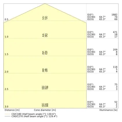 De lichtopbrengst (Lumen), geeft weer hoe krachtig het uitgestraalde licht is. Dit is belangrijk om te weten om de juiste sfeer te creëren. 0 tot 400 Lumen is bij uitstek geschikt voor accent- of sfeerverlichting. Een hoger aantal Lumen is, afhankelijk van de grootte van de ruimte, beter geschikt als ondersteunende- of basisverlichting. Heb je plafonds hoger dan 4 meter, dan is een lichtopbrengst van minimaal 8000lm aan te raden indien heldere verliching gewenst is (vb. in werkomgevingen).