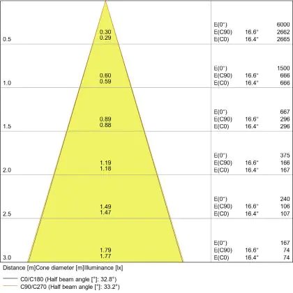 De lichtopbrengst en de gradenbundel spelen een grote rol. Zo geeft de lichtopbrengst van 670 Lumen in combinatie met de 36° stralingshoek deze inbouwspot een specifieke toepassing. Kort samengevat is een lichtintensiteit van maximaal 400 Lumen ideaal voor accentverlichting, terwijl hogere waardes goed gebruikt kunnen worden als basisverlichting. Over het algemeen geldt: hoe breder de gradenbundel, hoe geschikter deze is door basisverlichting. Dit komt doordat het licht over een groter oppervlak wordt verspreid. Smallere gradenbundels (tot 40°) kunnen echter bij hoge plafonds ook goed tot hun recht komen als algemene verlichting.
