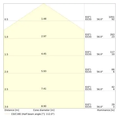 De lichtopbrengst (Lumen), geeft weer hoe krachtig het uitgestraalde licht is. Dit is belangrijk om te weten om de juiste sfeer te creëren. 0 tot 400 Lumen is bij uitstek geschikt voor accent- of sfeerverlichting. Een hoger aantal Lumen is, afhankelijk van de grootte van de ruimte, beter geschikt als ondersteunende- of basisverlichting. Heb je plafonds hoger dan 4 meter, dan is een lichtopbrengst van minimaal 8000lm aan te raden indien heldere verliching gewenst is (vb. in werkomgevingen).