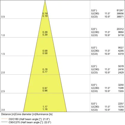 De gradenbundel geeft informatie over hoe breed het licht wordt uitgestraald. Dit zit tussen de 0 en 360 graden (D). Hoe kleiner de hoek, hoe specifieker de lichtbundel is. Over het algemeen is een smalle gradenbundel perfect voor sfeer- of accentverlichting, terwijl een brede gradenbundel ideaal is om grote oppervlaktes te verlichten.