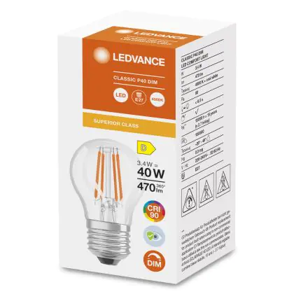 Beschrijving Ledvance Superior Classic LED E27 Kogel Filament Helder 3.4W 470lm - 940 Koel Wit | Dimbaar - Beste Kleurweergave