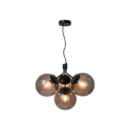 Deze Ivona hanglamp is zwart met gerookt glas, wat een stoere industriële look creëert. Het armatuur heeft 4 lampen met een E27 fitting (max. 28W). Hierbij raden we het gebruik van filamentlampen aan, doordat deze extra nadruk leggen op het industriële design. De hanglamp is dimbaar in combinatie met een dimbare lamp.