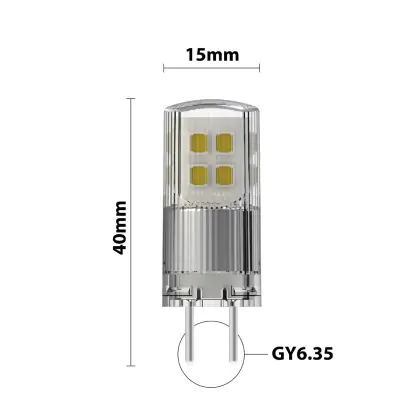 GY6.35 lampen dienen vooral als decoratieve (sfeer)verlichting in meerdere toepassingsgebieden, zoals keukens, woonkamers, supermarkten, horecagelegenheden, de retail en hotels. Dit type LED verlichting klik je via de handige 2-pins steekfitting heel simpel vast in de meest smalle armaturen, waaronder vitrinekasten, afzuigkappen of decoratieve plafond- of wandarmaturen. Ook handig om te weten is de kleurtemperatuur van deze LED lamp. Die is: 3000K - Warm Wit. En is deze GY6.35 Lamp eigenlijk dimbaar? Niet Dimbaar. Mocht je op zoek zijn naar een ander type LED steeklamp? Klik dan hier voor ons volledige assortiment.