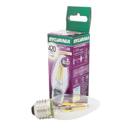 Beschrijving Sylvania ToLEDo E27 Kaars Filament Helder 4W 420lm - 827 Zeer Warm Wit | Vervangt 40W