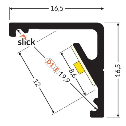 Beschrijving Topmet LED Profiel CABI12 E slide - 1m - Complete set - Aluminium raw alu.