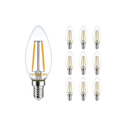 Beschrijving Voordeelpak 10x Noxion Lucent LED Filament Kaars 2.5W 827 B35 E14 Helder | Zeer Warm Wit - Vervangt 25W