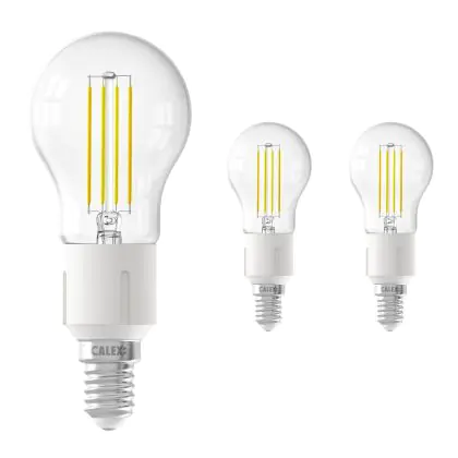 Beschrijving Voordeelpak 3x Calex Smart Kogelvormig LED Lamp E14 4,5W 450lm 1800-3000K Filament | Tuya Wifi - Afstembaar Wit